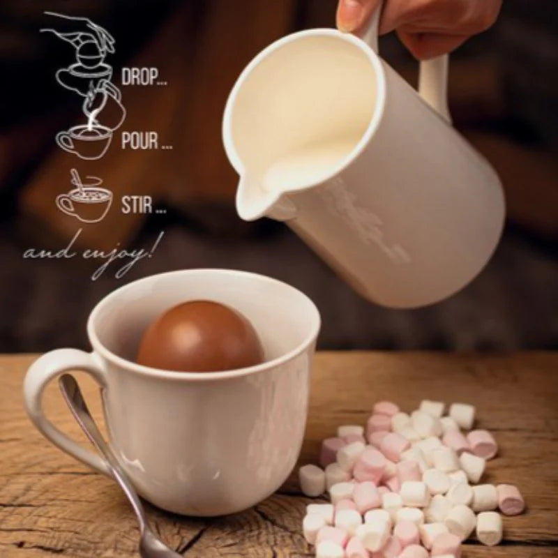 Aceste sfere pline de bucurie se topesc delicat in ceasca ta cu lapte cald si elibereaza treptat doza perfecta de cacao, zahar si bezele pentru o ciocolata calda generoasa si irezistibila. Rezultatul este o bautura cremoasa, bogata in ciocolata, pentru un moment de rasfat. BOMBELE pentru ciocolata calda de casa sunt, de asemenea, un cadou original si delicios pentru cei dragi.